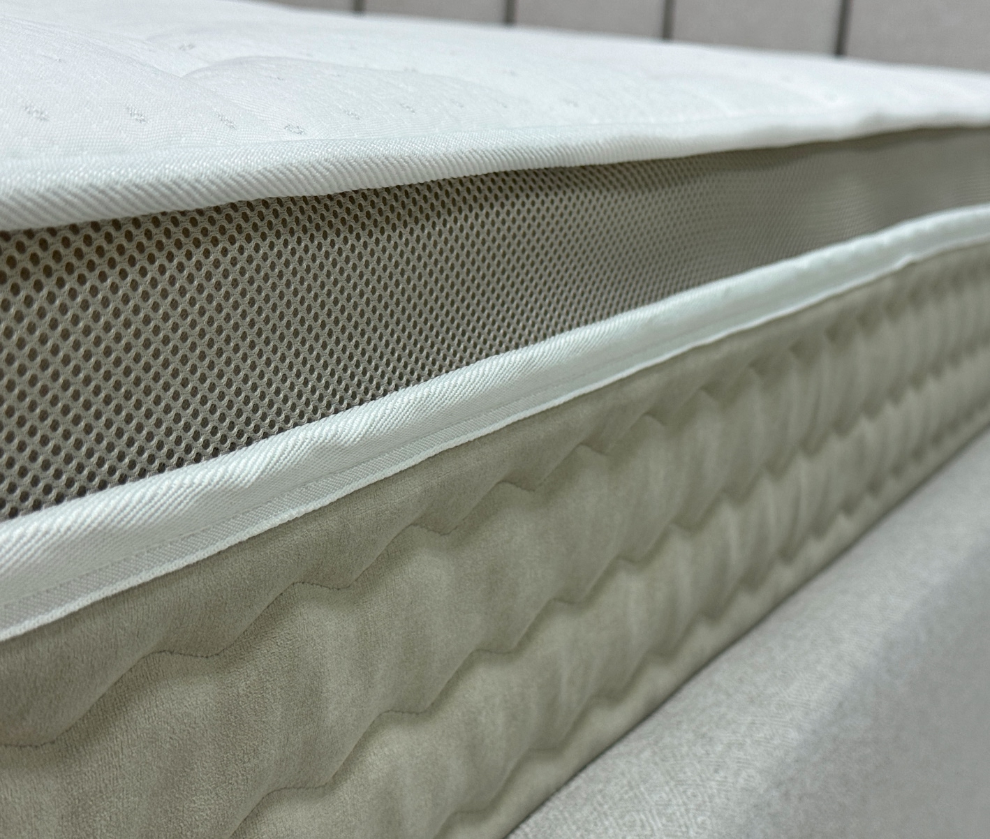 Бурлет из мебельного велюра «Teddy» - Бурлет матраса изготовлен из плотного износостойкого велюра «Teddy» цвета 005. Этот материал обладает высокой устойчивостью к истиранию (100 000 циклов по тесту Мартиндейла) и не подвержен деформации, что позволяет матрасу надолго сохранять первоначальный вид. Велюр легко очищается от самых сложных загрязнений, что делает его практичным в использовании.