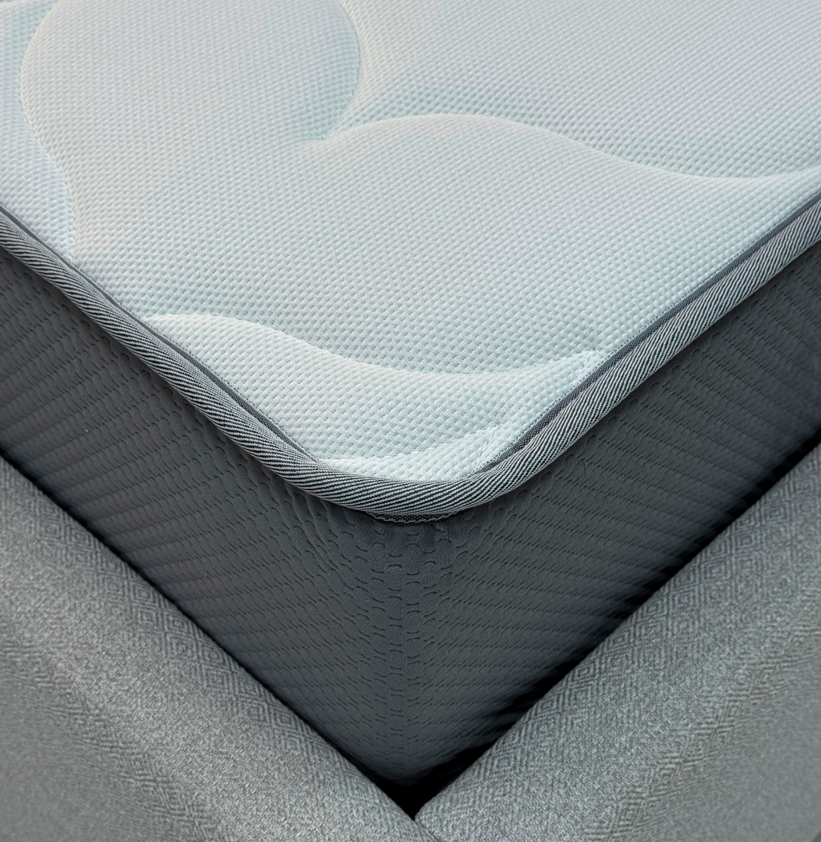 Короб ППУ - элемент конструкции матраса, усиливающий жесткость пружинных моделей по краям, предотвращая проседание при регулярной нагрузке. Особенно важен при локальных нагрузках на борт матраса (посадка, подъем). Используются два вида пен: стандартная у изголовья и повышенной плотности в боковых зонах.