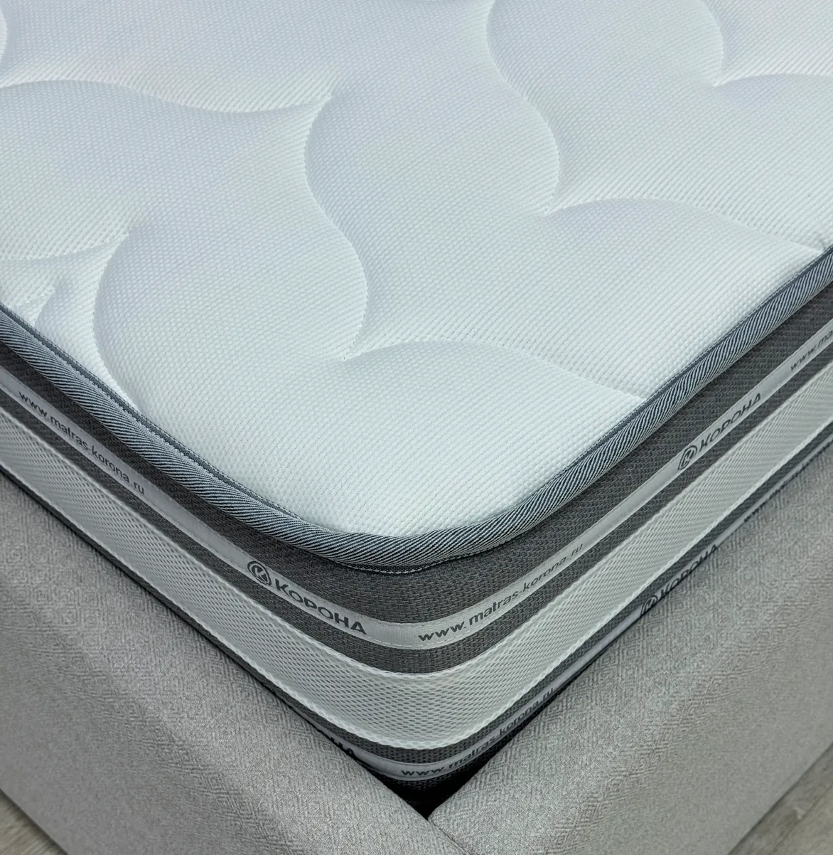 Короб ППУ - элемент конструкции матраса, усиливающий жесткость пружинных моделей по краям, предотвращая проседание при регулярной нагрузке. Особенно важен при локальных нагрузках на борт матраса (посадка, подъем). Используются два вида пен: стандартная у изголовья и повышенной плотности в боковых зонах.